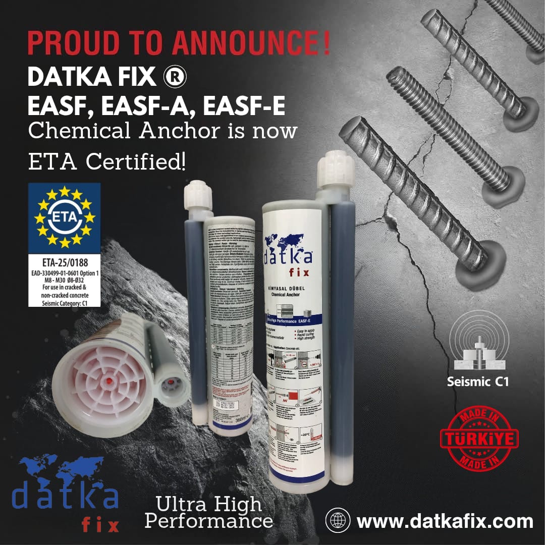 We are proud to announce that Datka Fix EASF, EASF-A, and EASF-E Chemical Anchors are now officially ETA Certified.